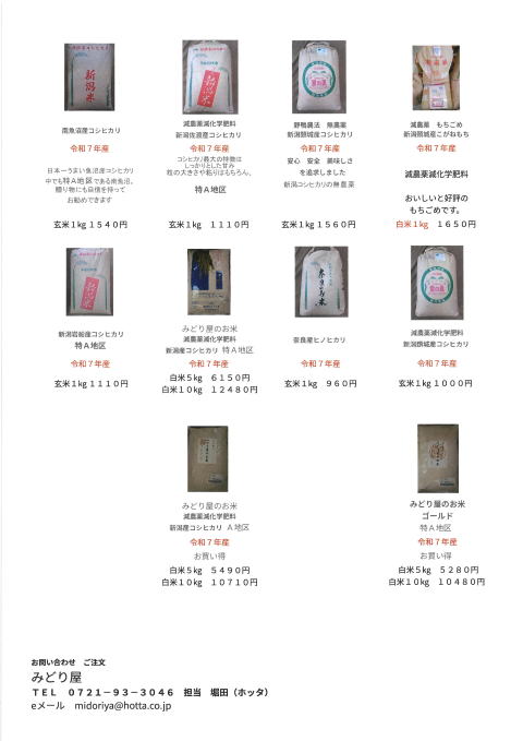 令和7年産 新米入荷致しました